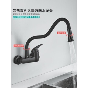 铜折叠式冷热水龙头厨房入墙式水槽可拉伸龙头阳台面盆...