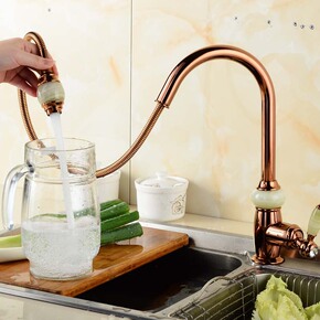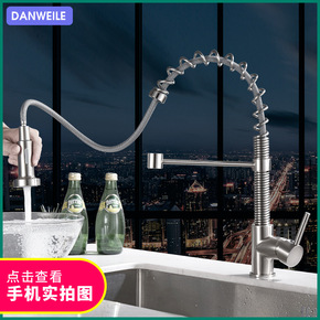 全铜弹簧水龙头抽拉厨房龙头拉伸冷热混水龙头可拉伸拉...