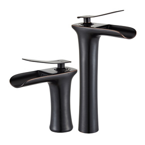 全铜仿古欧式复古浴室卫生间面盆黑色瀑布金色家用个性...