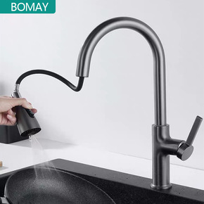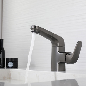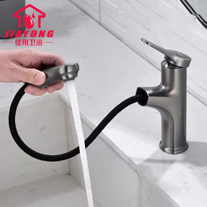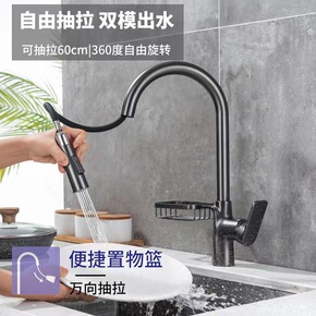 铜体旋转抽拉七字洗脸盆龙头枪灰色升降冷热带花洒伸缩...