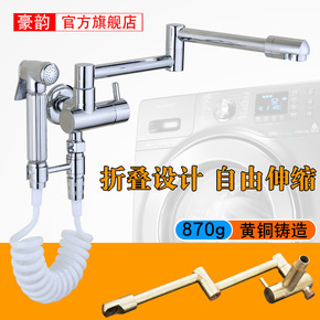 全铜加长折叠水龙头伸缩洗衣机拖把池单冷龙头阳台入墙...