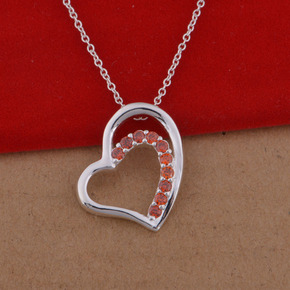 外贸饰品批发 镀925纯银项链 韩版流行 爱心镶...