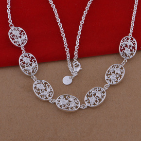 镀925纯银项链 韩版流行 创意花纹项链 外贸饰...