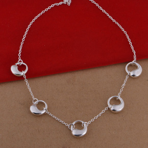镀925纯银项链 韩版流行 镂空花环项链 外贸饰...