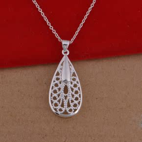 外贸饰品批发 镀925纯银项链 韩版流行 水滴镂空...