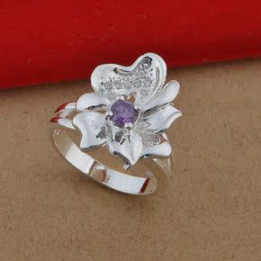 外贸戒指 镀925纯银戒指 镀银戒指 韩版时尚 花...