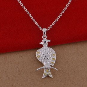 镀925纯银项链 韩版流行 镶钻鹦鹉项链 外贸饰...