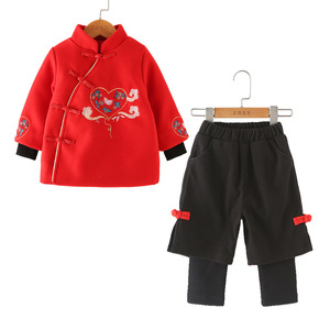儿童元旦拜年服女童汉服过年加绒喜庆唐装宝宝中国风演...