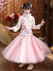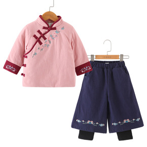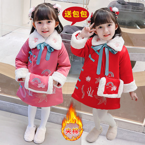 中国民族风童装儿童汉服秋冬女宝宝周岁唐装女童古装旗...