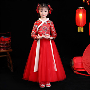 汉服女童秋冬古装超仙儿童唐装旗袍连衣裙2020新款...