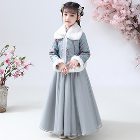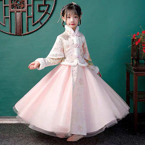 女童汉服冬装2021新款秋冬唐装公主裙儿童古风裙子...