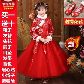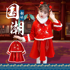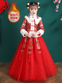 拜年服汉服女童冬装中国风儿童古装连衣裙冬季女孩衣服...