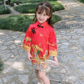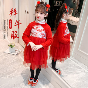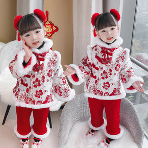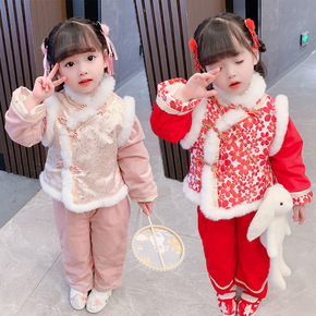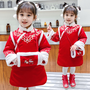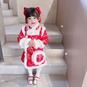 中国风拜年服儿童汉服女童旗袍冬装拜年服周岁唐装过年...