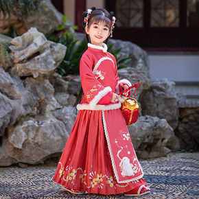 女童汉服过年冬装超仙中国风儿童古装女孩加绒裙子冬季...