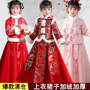 女童汉服秋冬装加绒套装儿童古装中国风仙女公主裙唐装...