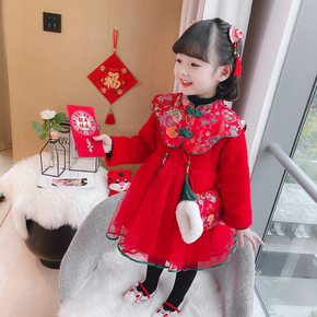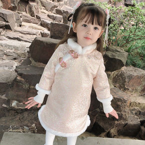 韩货拜年服宝宝女童旗袍秋冬新款洋气夹棉加厚裙子儿童...