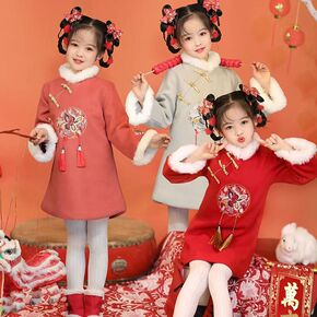 女童国潮旗袍裙儿童秋冬款长袖鹿皮绒旗袍宝宝洋气中国...
