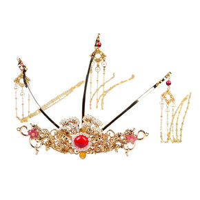 汉服发冠流苏步摇长款配饰复古皇冠中式大气头饰古装发...