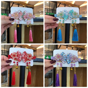 手工日式和风扇子古装发饰女童宝宝演出汉服唐装旗袍发...