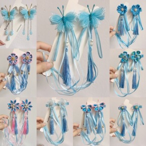 小清新汉服可爱女童古风发饰公主蝴蝶流苏花朵头花中国...