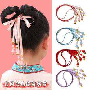 儿童汉服发饰铃铛丸子头配饰小女孩编发发带宝宝古装女...