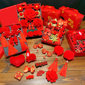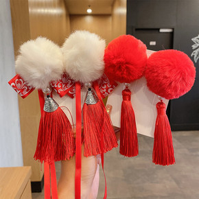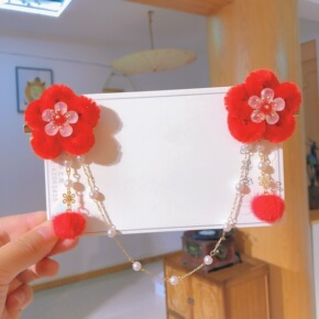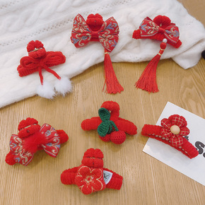 新年古装汉服头饰中国红花朵抓夹蝴蝶结流苏头饰可爱夹...