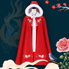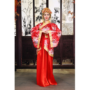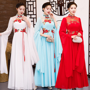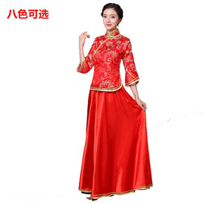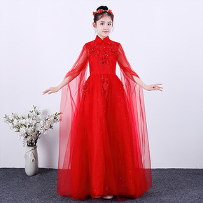 中国风古装改良旗袍公主裙儿童走秀红色长袖立领长裙古...
