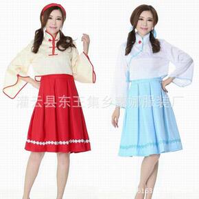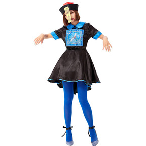 日本货源万圣节服饰蓝色刺绣仙鹤僵尸改良服不规则旗袍...