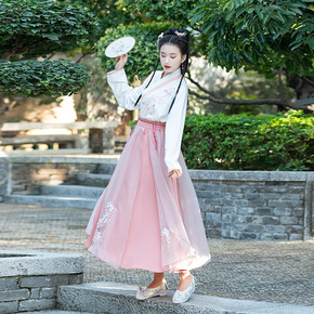 改良版成人汉服女宋制大袖衫古风齐腰一片式褶裙三件套...
