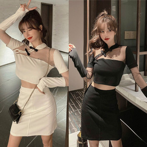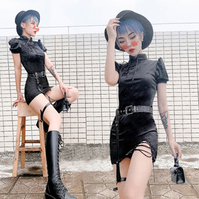 舞依芭酒吧ds演出服新款黑色修身连衣裙改良复古旗袍...