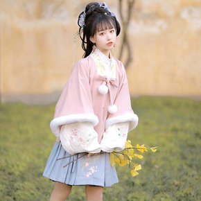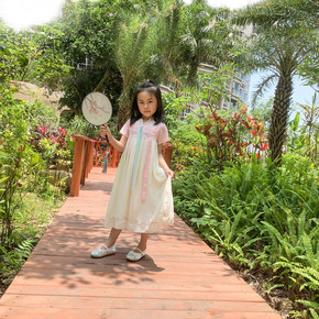 复古刺绣仙女裙汉服女童短袖蝴蝶结连衣裙中国风唐装日...