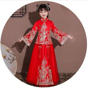 儿童古装超仙女童汉服春夏古筝飘逸秋装中国风广绣襦裙...
