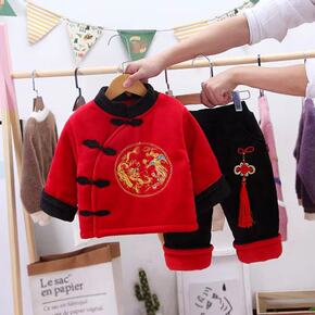 童装汉服秋装套装女宝宝长袖唐装秋季古风男孩长裤棉麻...