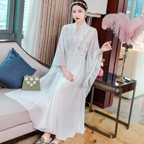 改良汉服连衣裙春秋新款女学生绣花古风古装仙女高腰中...