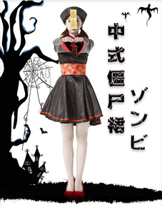 中式改良僵尸骷髅旗袍服装日本乐天亚马逊女款万圣节服...