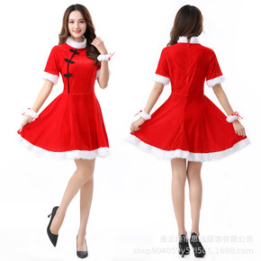 厂价销售圣诞节红色修身旗袍款圣诞服套装女万圣节派对...