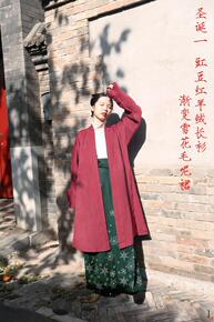 【缃裁】圣诞套装一 豇豆红羊绒褙子长衫渐变雪花毛呢...