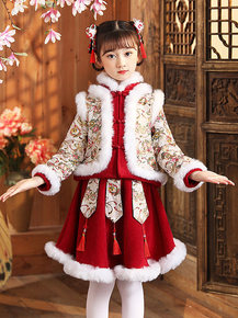 女童拜年服加绒卫衣套装过新年喜庆冬季加厚唐装幼儿园...