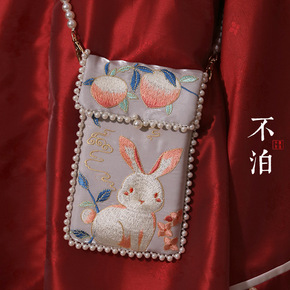 汉风少女 望春归-桃荣汉服手机包 兔子小包绣花刺绣...