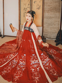 原创【倾君】唐制齐胸襦裙刺绣大裙摆齐腰仙气汉服女风...