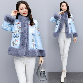 2021秋冬新款狐狸毛皮外套女中国风宫廷缎面中长款...