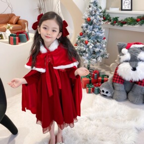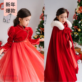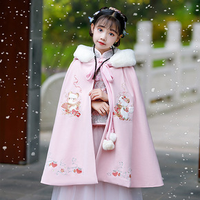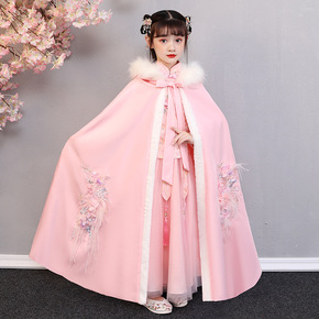 汉服女童秋冬唐装儿童古装冬季中国风披风斗篷加绒加厚...
