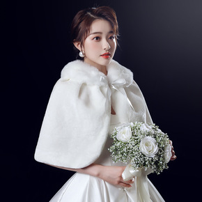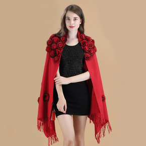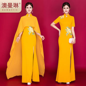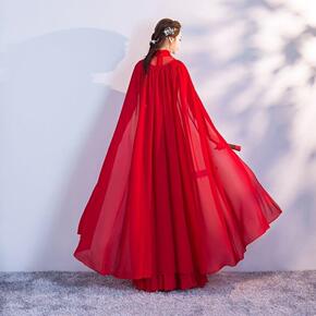 中国风红色高端走秀旗袍长款演出服两件套披肩外搭斗篷...