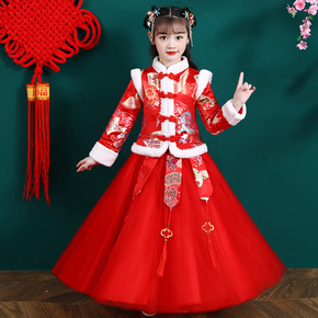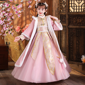 汉服唐装儿童女仙女风古装加绒加厚冬装公主拜年表演服...