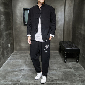 毛呢风衣外套青年中长款中国风男装秋冬复古披风过膝斗...