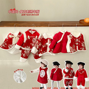 女童宝宝新年服周岁加厚保暖加绒生日汉服拜年服套装风...