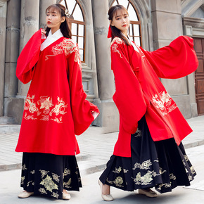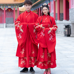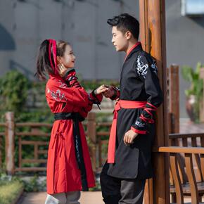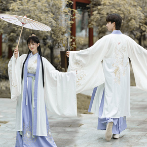 8042+8043汉服刺绣交领襦裙男女cp情侣大氅...
