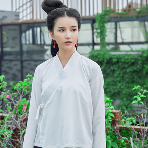 实拍新款 8819改良日常汉服非古装交领上衣白色打...
