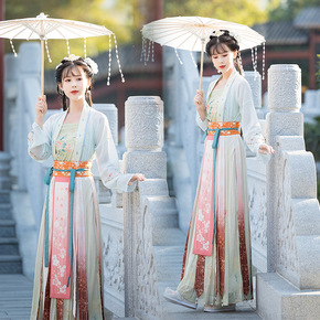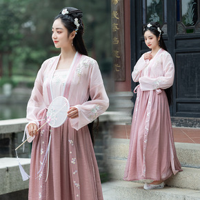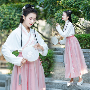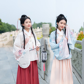 实拍汉服汉元素古装对襟上衣印花刺绣齐胸襦裙两件套学...