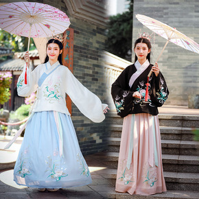 明制交领双层袄裙琵琶袖重工绣花汉服齐腰褶裙黑白双色...